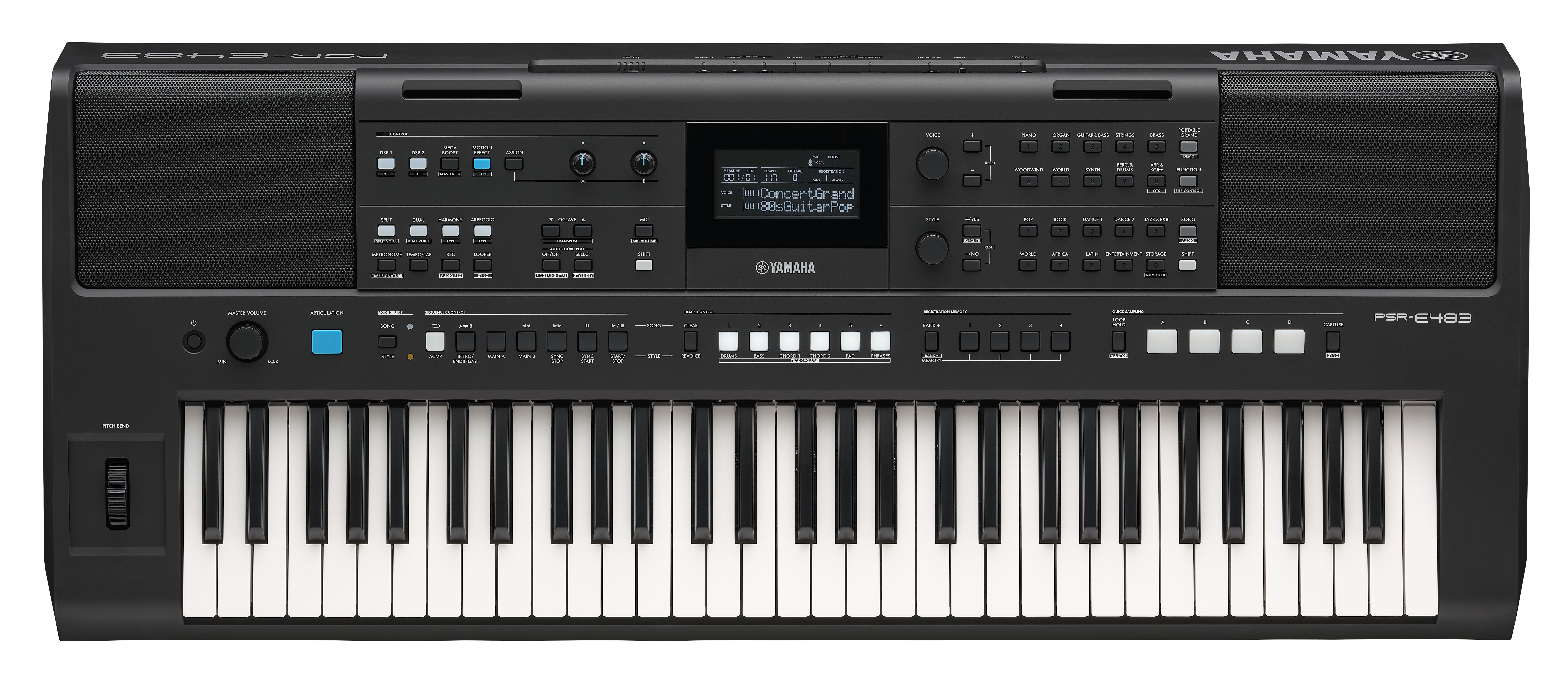 Das PSR-E483 zeigt, dass Musizieren nicht kompliziert sein muss. Egal ob erste Schritte oder neue musikalische Ideen - mit diesem Keyboard steht dem Spielspass nichts im Weg.